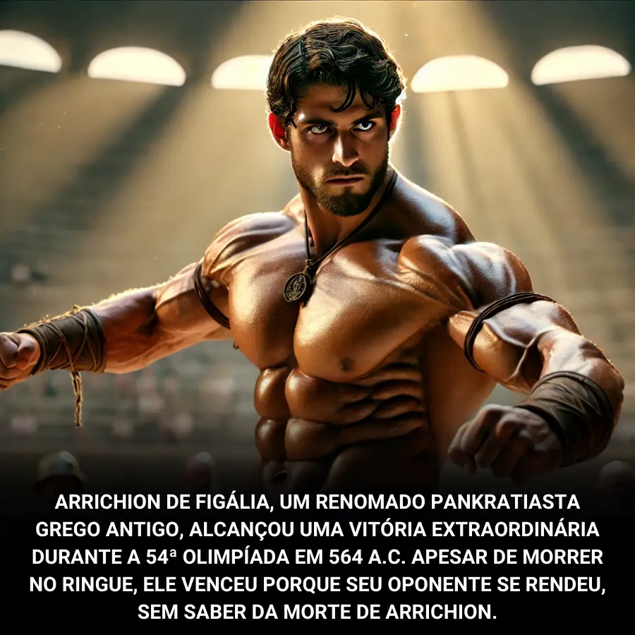 Em 564 a.C., durante a 54ª Olimpíada, um evento extraordinário ocorreu no cenário das antigas competições olímpicas. Arrichion de Figália, um renomado lutador de pankration, conquistou uma vitória que transcendeu a compreensão humana e se transformou em uma história lendária da Antiguidade. O que torna essa vitória ainda mais impressionante e incomum é o fato de que Arrichion, embora tenha morrido durante a luta, foi declarado vencedor de uma maneira inusitada e simbólica.