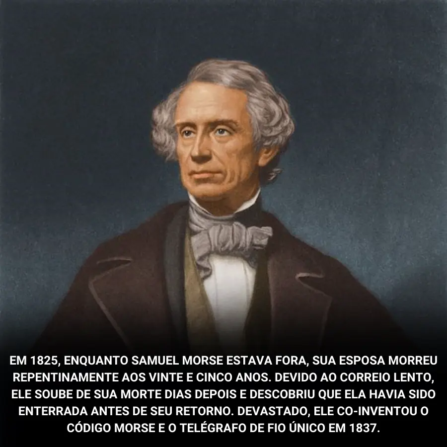 Em 1825, quando Samuel Morse estava fora de casa, sua esposa, Lucretia, faleceu de maneira inesperada, aos 25 anos. Ela tinha ficado doente, e devido ao sistema de correio extremamente lento da época, Samuel Morse não recebeu a notícia de sua morte até dias depois. Para piorar a situação, ao retornar, ele descobriu que ela já havia sido enterrada. Essa perda devastadora afetou profundamente o inventor, e muitos consideram esse evento como uma das razões que o levou a se dedicar à invenção do telégrafo, uma ferramenta que poderia mudar a forma como as pessoas se comunicavam à distância.