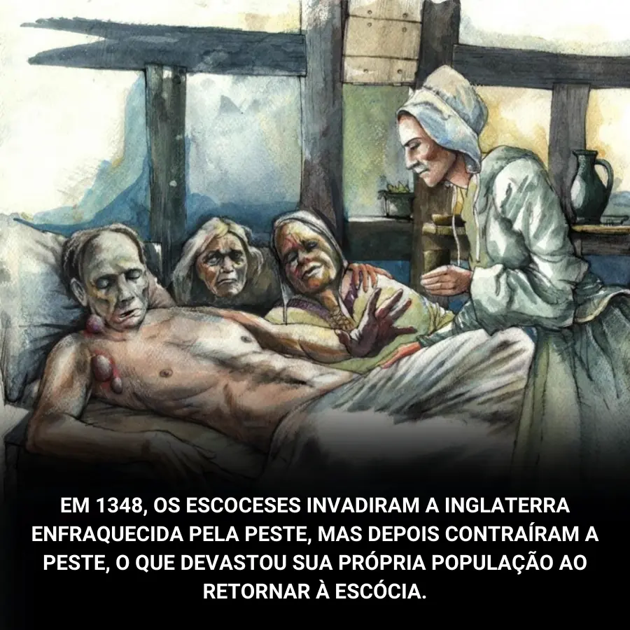 Em 1348, um evento inusitado e trágico ocorreu durante um período já marcado por desafios devastadores: a peste negra. Os escoceses, movidos por uma série de motivações, decidiram invadir a Inglaterra, que já estava debilitada pela doença. No entanto, ao realizarem essa invasão, não esperavam que o destino os tomaria de surpresa de uma maneira cruel. A peste, que já assolava a Inglaterra, acabou atingindo de forma fatal a própria força invasora, retornando à Escócia com uma força ainda maior, devastando a população.