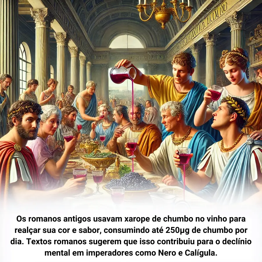 Na Roma Antiga, os banquetes eram momentos de grande celebração e indulgência. Entre os muitos luxos que os romanos permitiam a si mesmos, havia o uso de um ingrediente curioso e perigoso: o xarope de chumbo. Este composto era adicionado ao vinho para melhorar a sua cor e sabor, tornando-se uma prática comum em muitas das festas e celebrações. Porém, o que muitos não sabiam era que, ao consumir esse veneno, estavam, na verdade, colocando suas vidas em risco e, possivelmente, contribuindo para o declínio mental de imperadores como Nero e Calígula.