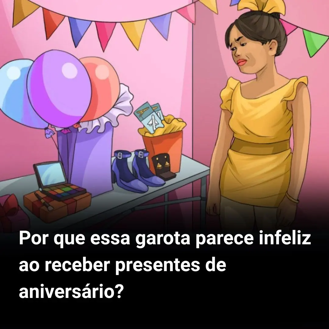Por que essa garota parece infeliz ao receber presentes de aniversário?